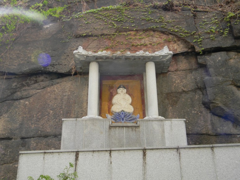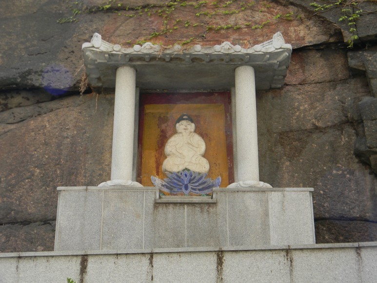 암벽 감실(가로 1m, 세로 40cm, 길이 30cm 크기)에 작게 깃든 마애불(마애여래좌상)은 조선 후기(