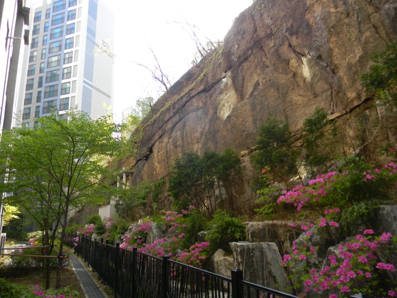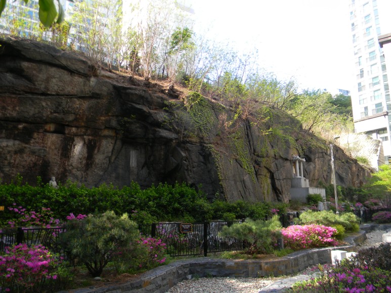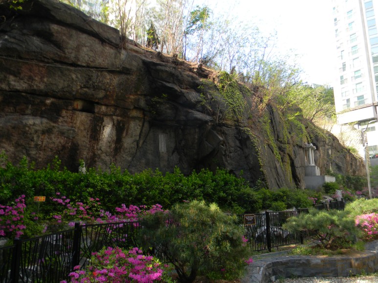 7. 아파트와 아파트 부속 공원으로 변해버린 옛 안정사터에 늘 그늘을 드리우는 벼랑