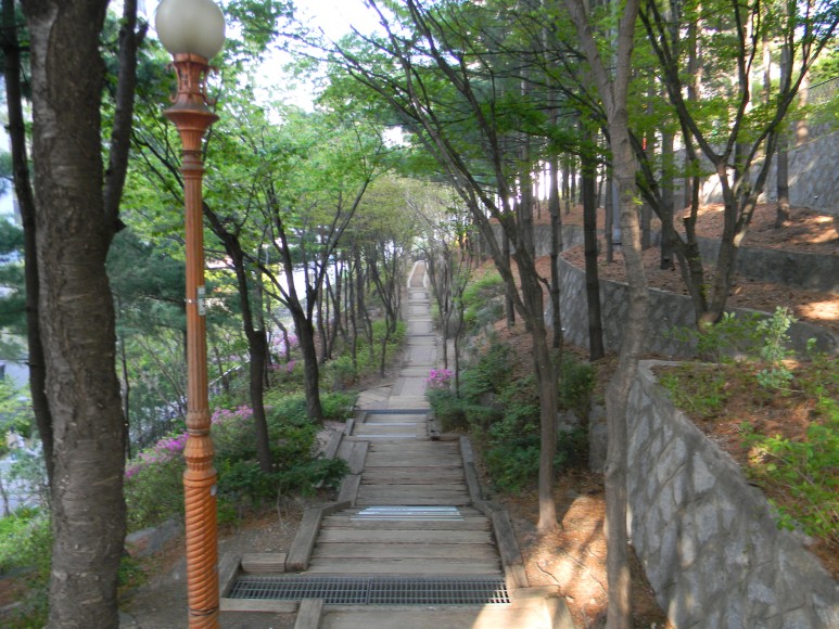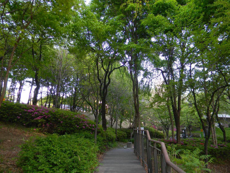 산 밑도리에는 주택과 아파트들이 가득 들어차 도시에 포위된 외로운 뫼가 되었으며 숲이 무성한