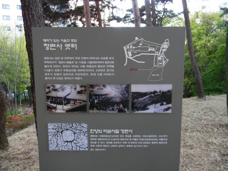 무학봉 남쪽 자락에 둥지를 틀었던 청련사(안정사)는 서울 도성 주변의 주요 고찰이자 비보사찰이다.