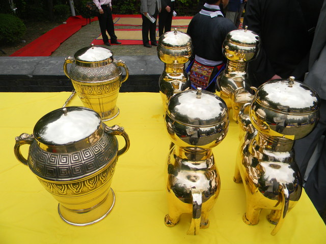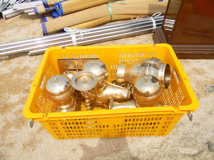 16. 제주를 담은 그릇과 의식 때마다 손을 씻는 정화수와 수건들
