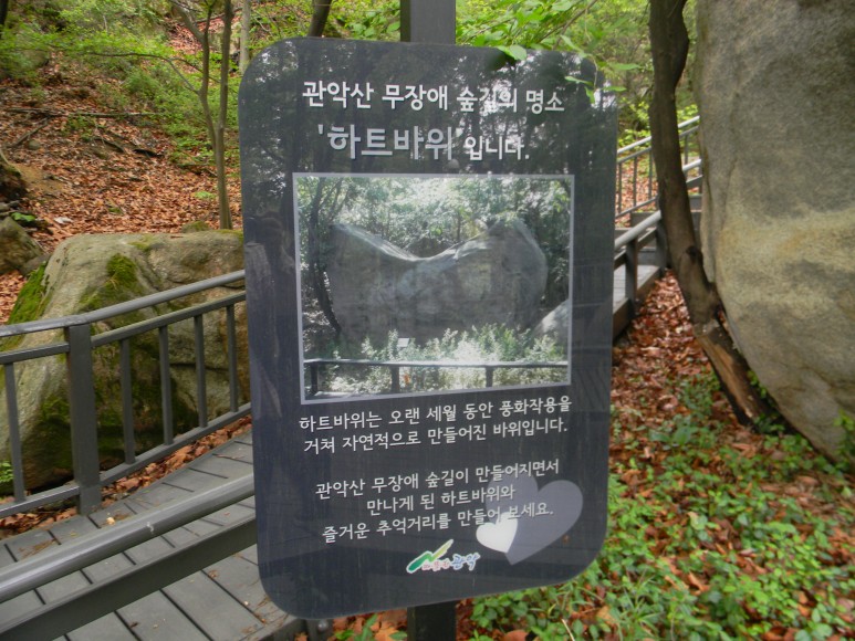 관악산 무장애숲길 개통으로 속세에 모습을 드러낸 바위로 하트처럼 생겼다고 해서 하트바위란 이름