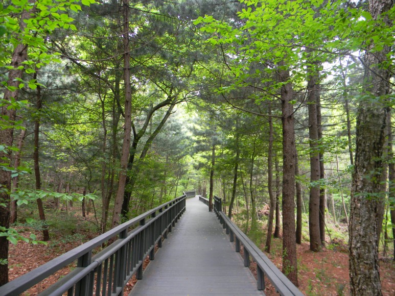 1-2구간은 420m 길이로 전 구간이 완만한 기울기의 나무데크길로 이루어져 있다. 하여 오르락 내리