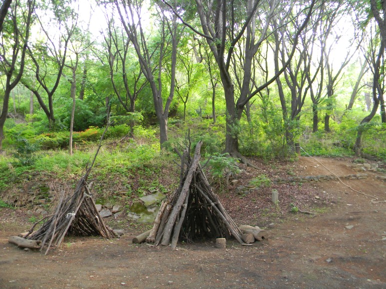 큰 나뭇가지와 작은 나뭇가지를 적절히 조합하여 김치광 비슷한 조형물을 만들었다. 이들은 어린이를