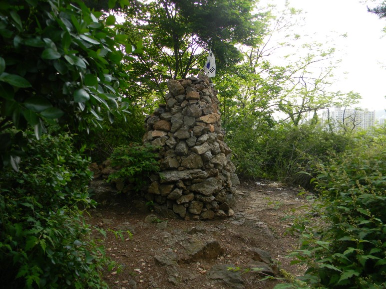 이곳이 연희104고지로 불리는 궁동산의 정상이다. 정상에는 돌탑이 세워져 있으며, 정상을 알리는 안
