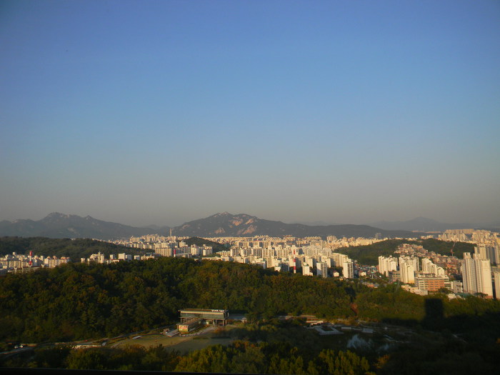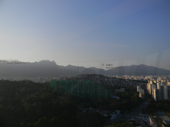 10. 전망대에서 바라본 도봉산(왼쪽 산)과 도봉구, 강북구, 노원구, 수락산(오른쪽 산)