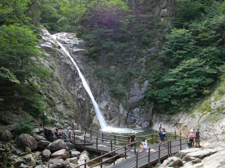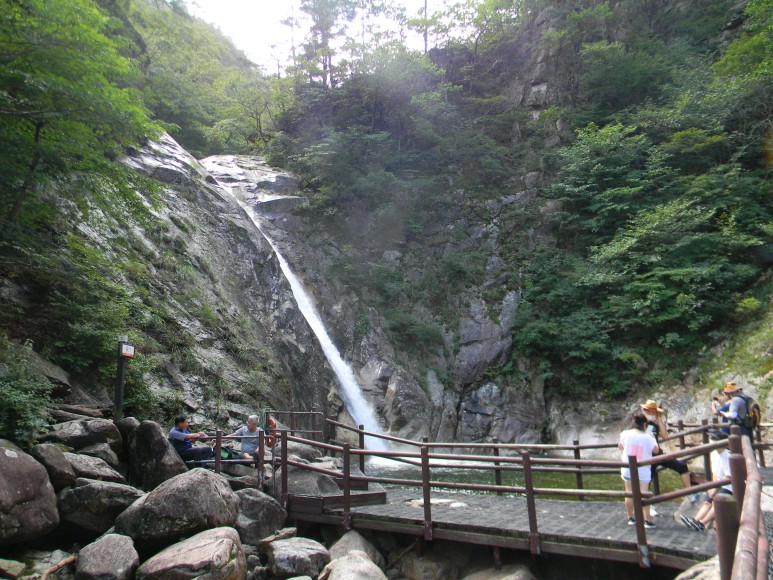 예전에는 폭포 못에 손과 발을 담굴 수 있었으나 이제는 그것도 금지되어 새롭게 둘러진 나무데크 탐