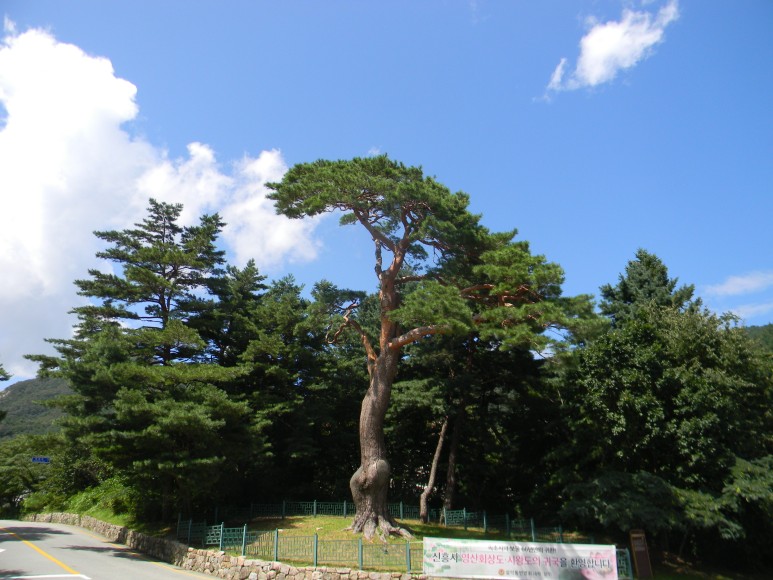 설악산국립공원 사무소(설악산국립공원 설악동 탐방안내소) 앞 교차로에 있는 설악동 소나무는 500~