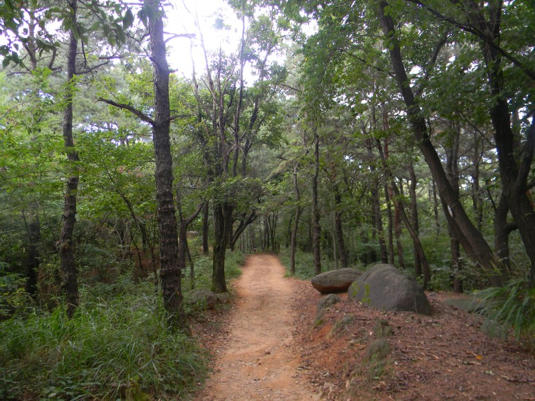 제외하면 거의 완만한 능선길이며, 나무가 무성하여 숲 너머로 보이는 것은 거의 하늘 뿐이다.