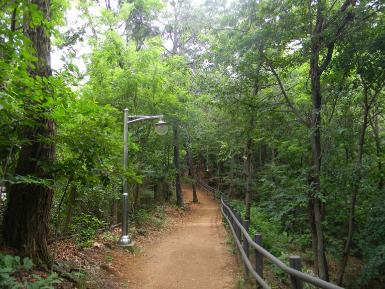 수명산 정상으로 올라가는 덕원예술고 서쪽 숲길은 수명산에서 가장 힘든 구간이다. 그래봐야 조금은