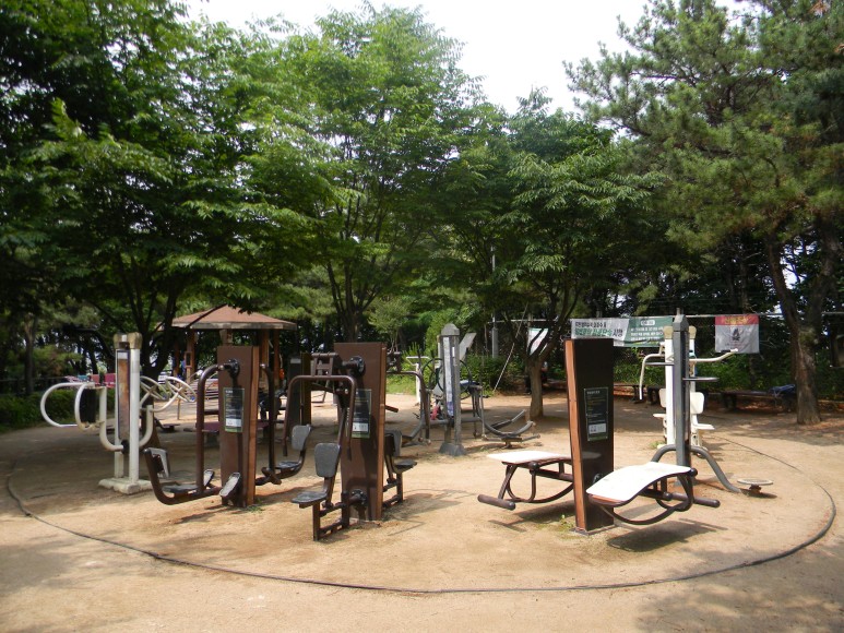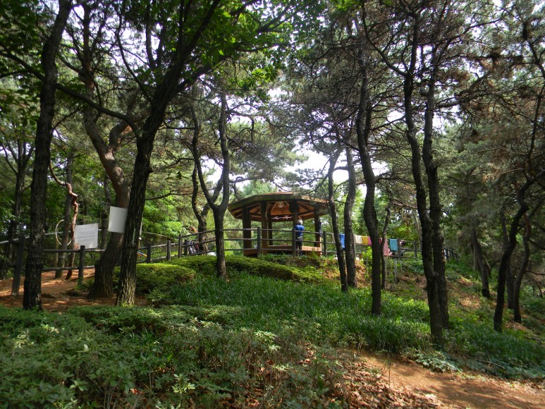 이곳이 수명산 꼭대기로 간단히 몸을 푸는 체육시설과 쉼터가 넉넉히 닦여져 있다.