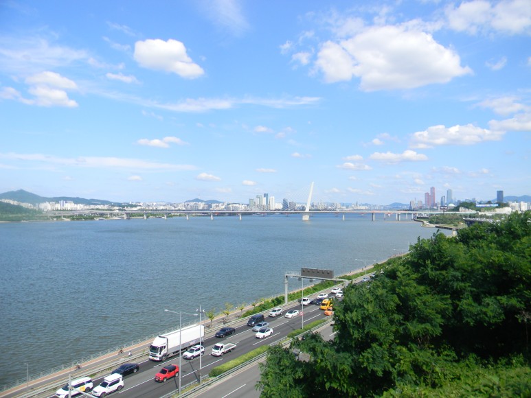 6. 염창산 북쪽 자락에서 바라본 한강과 월드컵대교, 서울 시내(마포구, 서대문구, 남산, 여의도 등)