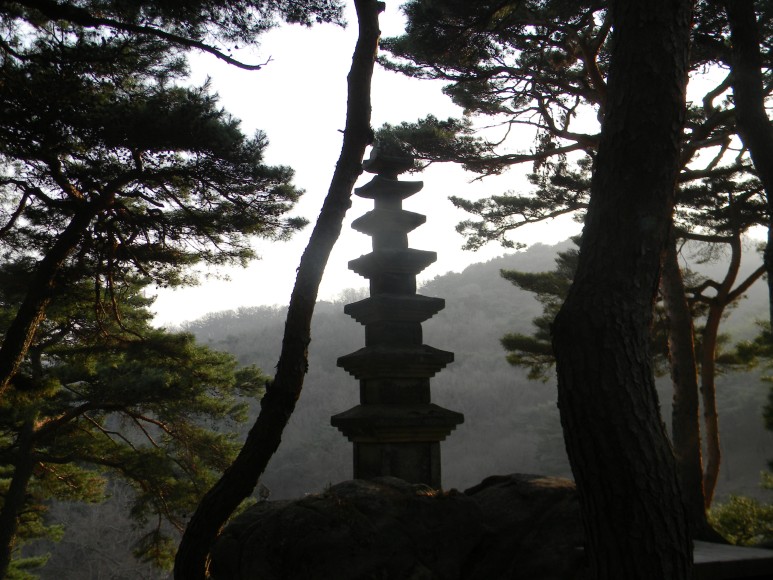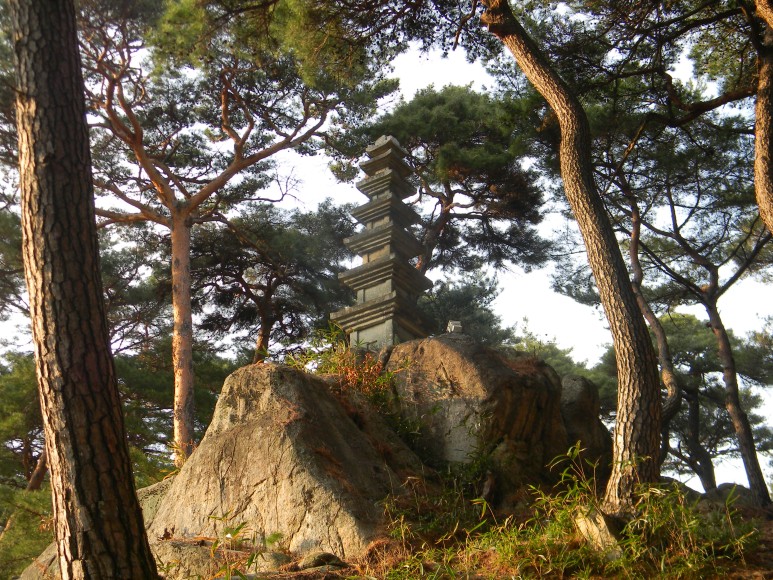 9. 바위에 뿌리를 내린 7층석탑과 그를 둘러싼 소나무들