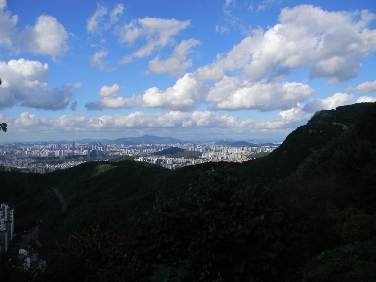 푸르른 초가을 하늘(이때가 9월 말이었음) 아래로 호암산 정상부와 북쪽 자락, 목골산, 관악구, 동작