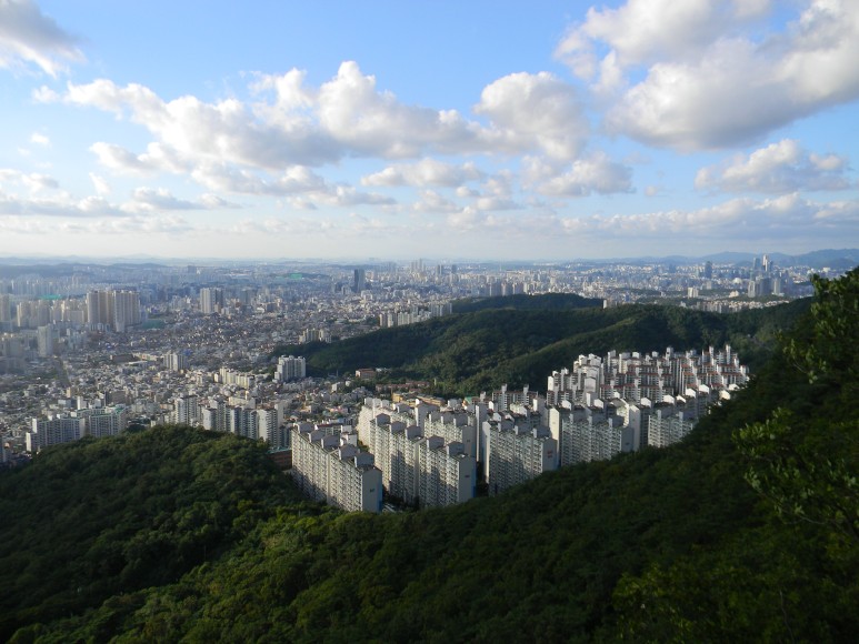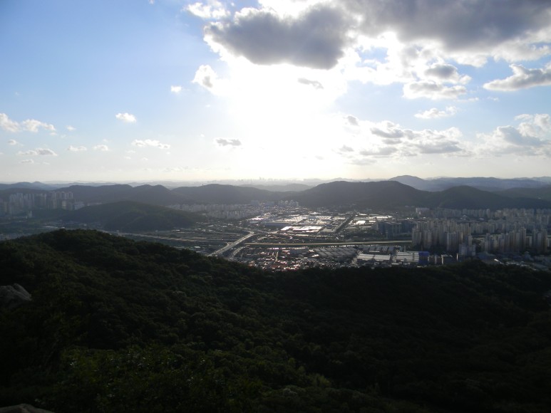 회색빛 시흥동 벽산아파트단지를 위시해 호암산 북쪽 산줄기와 목골산, 금천구, 관악구, 동작구, 영등
