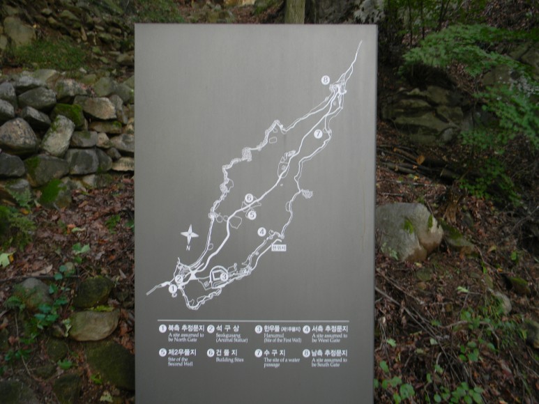 와 성곽의 윤곽 정도만 겨우 남아있는데, 서벽 길을 따라 가면 깊은 숲과 이름 없는 큰 바위, 약간의
