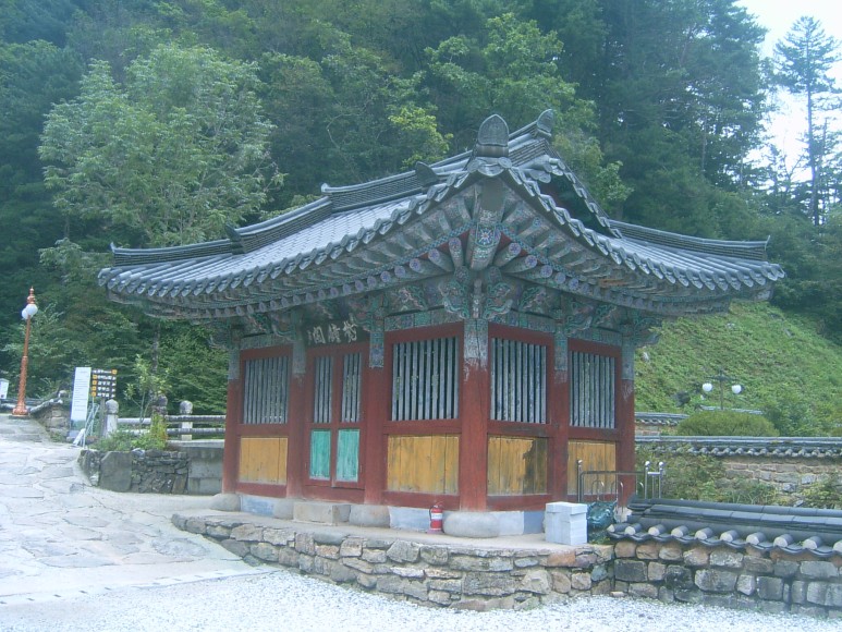 릅나무로 지었는데, 현판은 정암사가 인연이 깊던 탄허가 썼다.