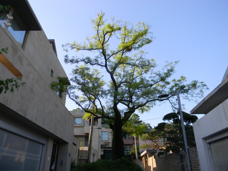 속인들의 집이 나무와 바짝 붙어있어 생육 환경이 그리 좋지는 못하다.