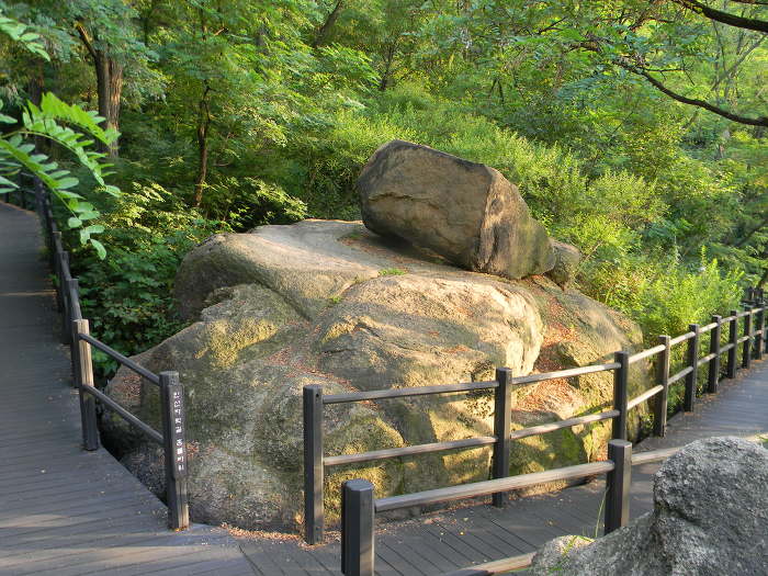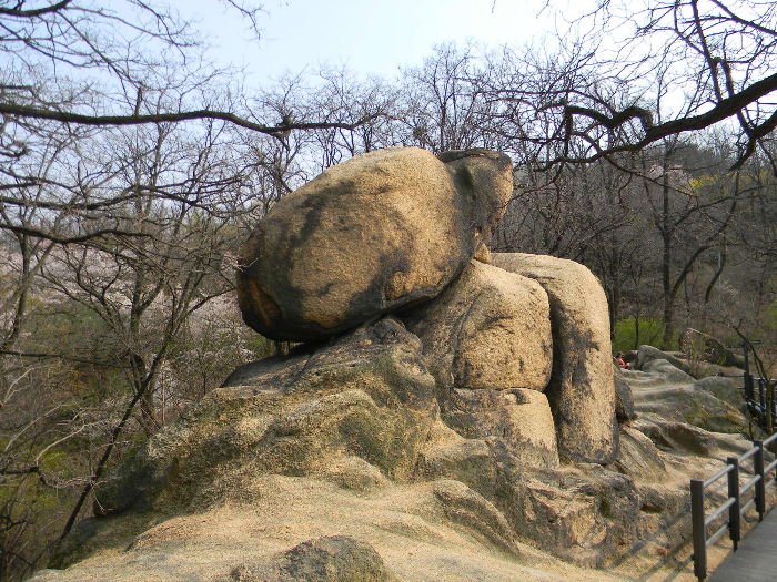 자락길을 따라 남쪽으로 조금 가면 흔들바위라 불리는 바위가 마 |