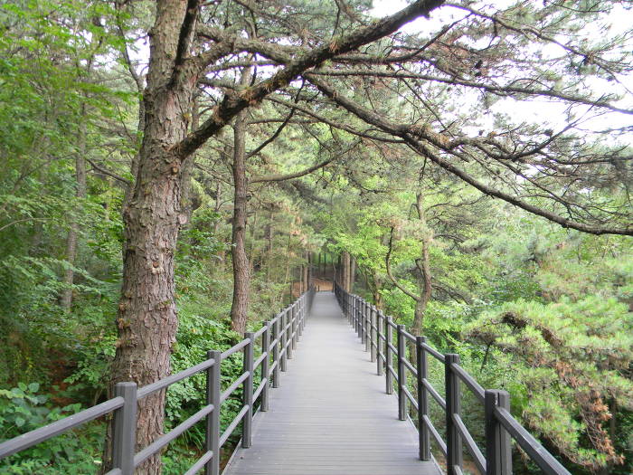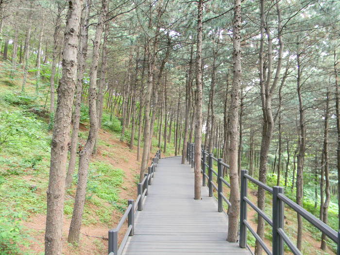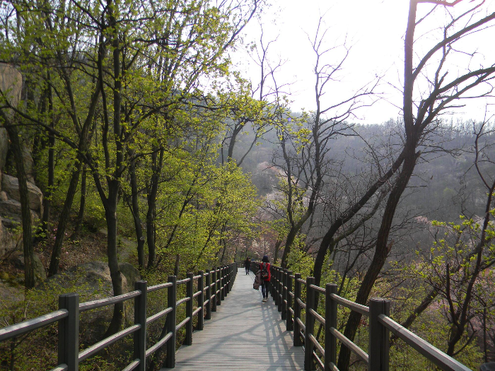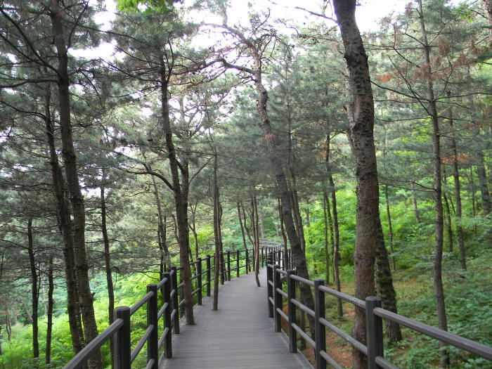 숲에서 서쪽 산길을 고집하면 무장애길로 이루어진 안산자락길이 마중을 |