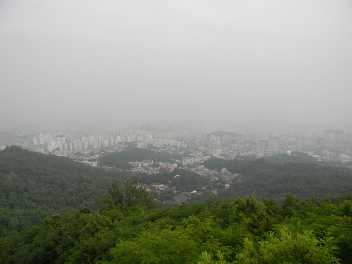 안산 동쪽 정상에서 시원스러운 산바람과 조망을 누리며 20분 정도 머물렀다. 비록 하늘의 비 |
