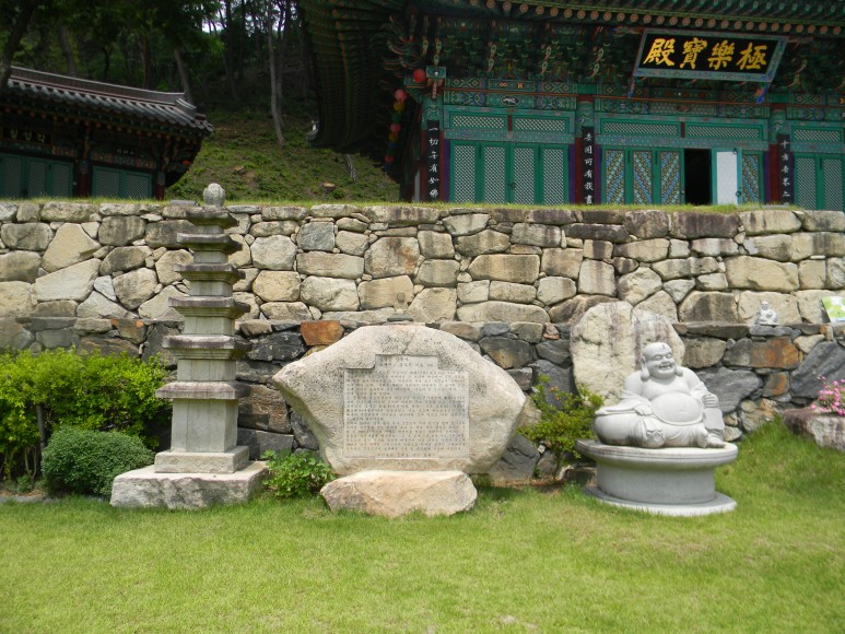 11. 극락보전 밑에 자리한 5층석탑과 창룡사의 내력을 머금은 표석, 그리고 똥배 포대화상