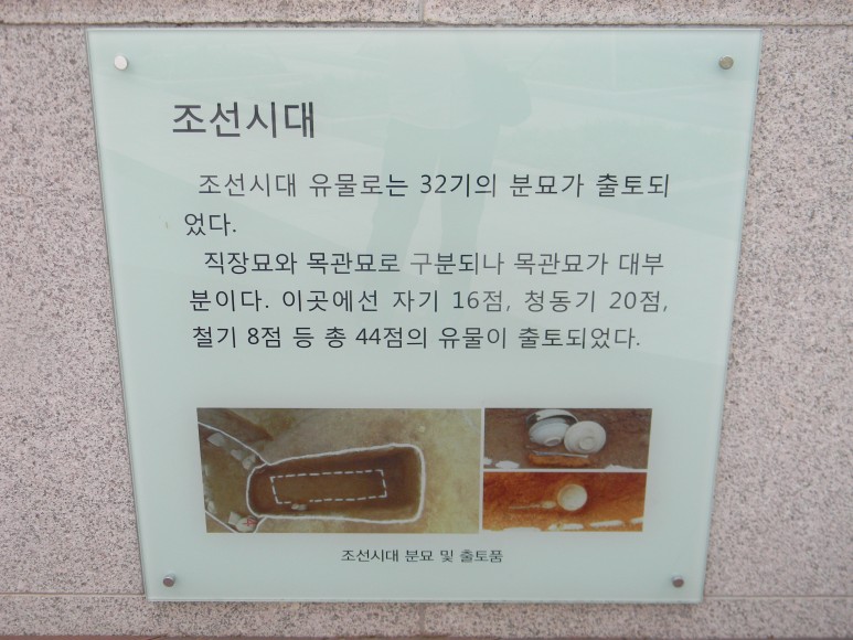 여기서는 직장묘와 목관묘 등 조선 무덤 32기가 나왔는데, 자기 16점, 청동기 20점, 철기 8점 등 44점