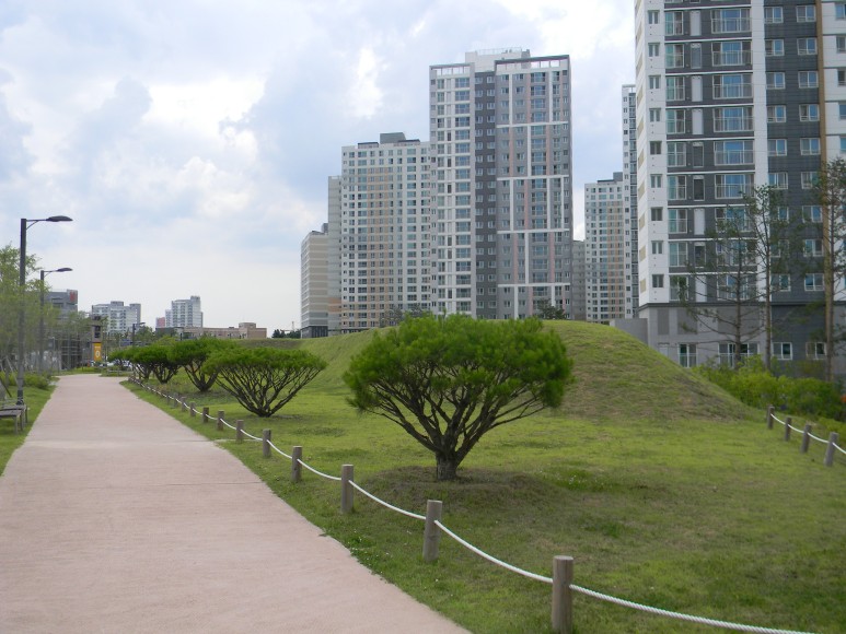 호암지구 한복판에 지라힌 호암토성은 도심 속 사적공원으로 꾸며졌다. 토성 옆으로 산책로를 닦았으