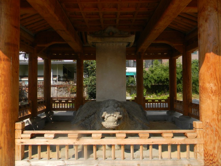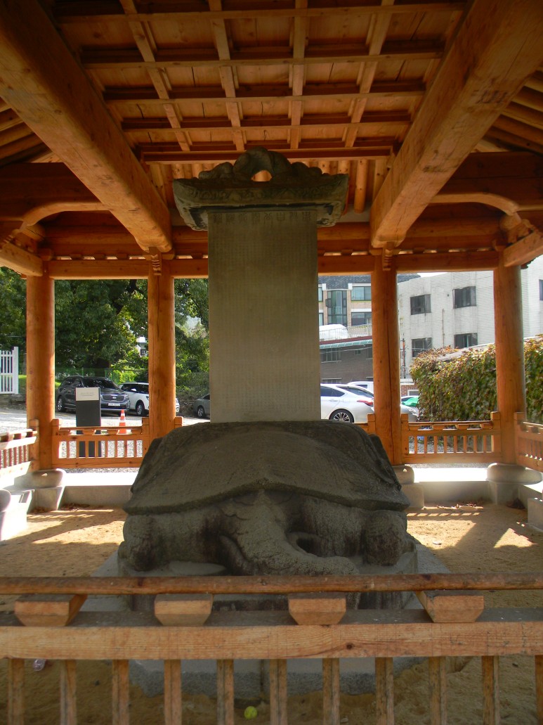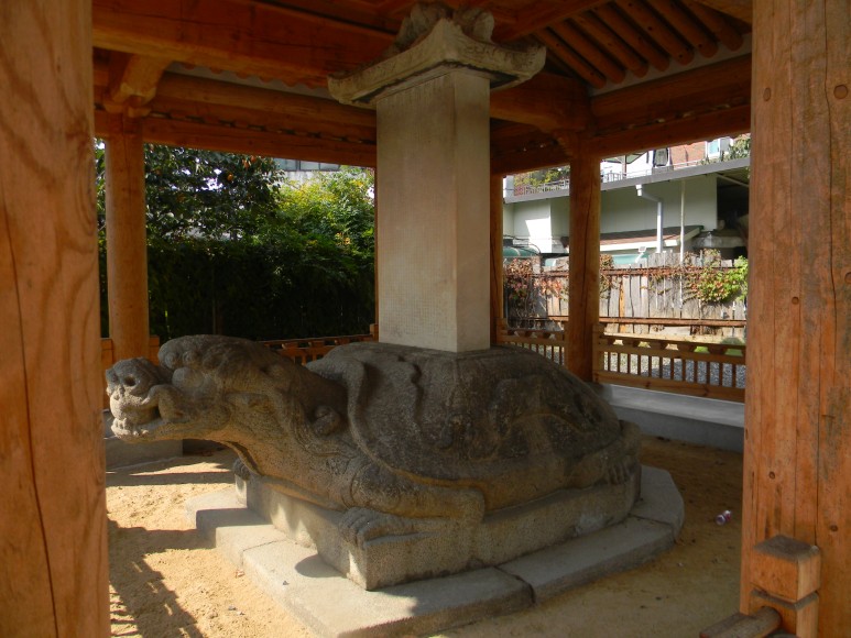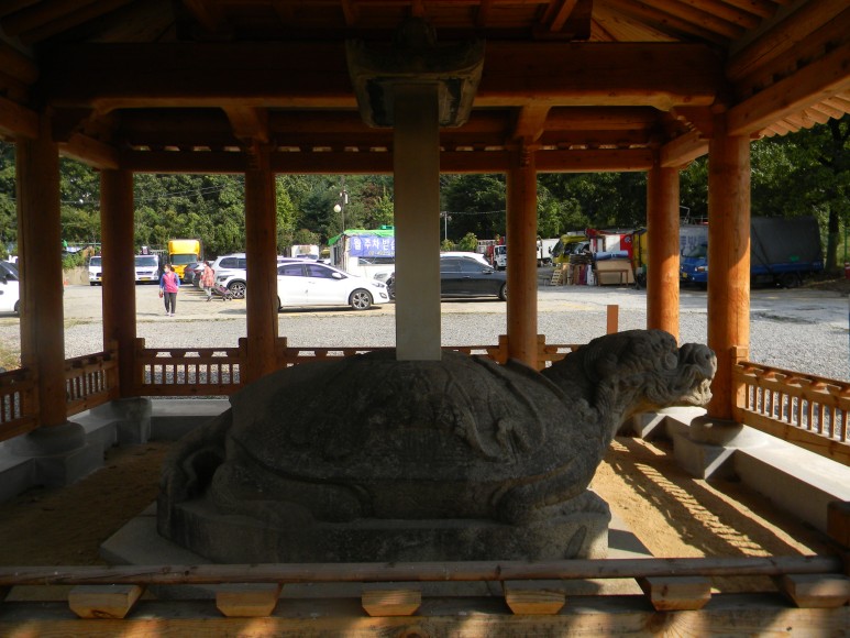 땅바닥에는 바닥돌과 기단석을 차례대로 깔고, 그 위에 거북 모양의 귀부를 두었는데, 그의 얼굴을
