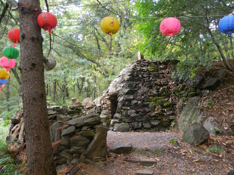다. 산신각 주위로는 돌담이 작은 석성처럼 둘러져 있으며, 이곳이 관룡탑(화관암)의 가장 안쪽이다.