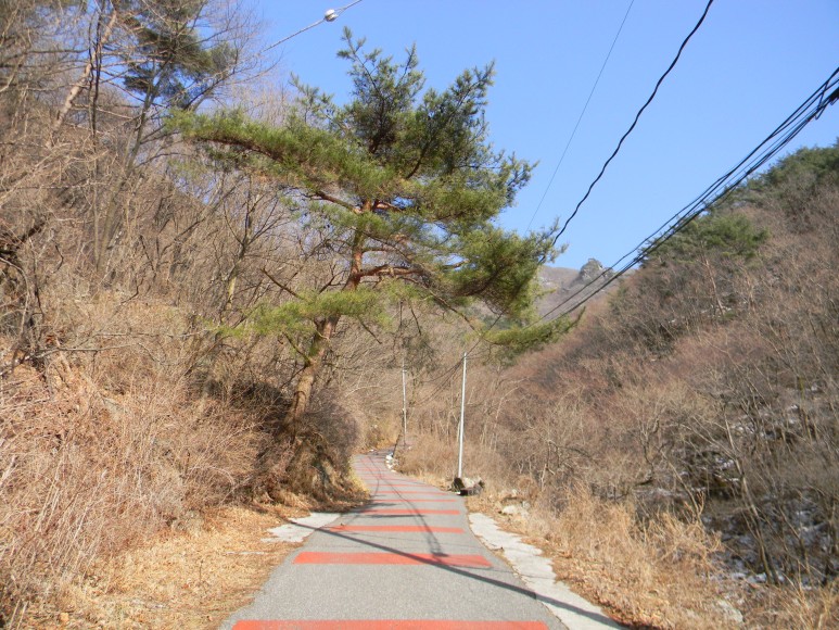 포장길이 닦여져 있는데, 그 길을 35~40분 정도 올라가야 된다. 산길은 경사가 조금 있는 편이나 자존
