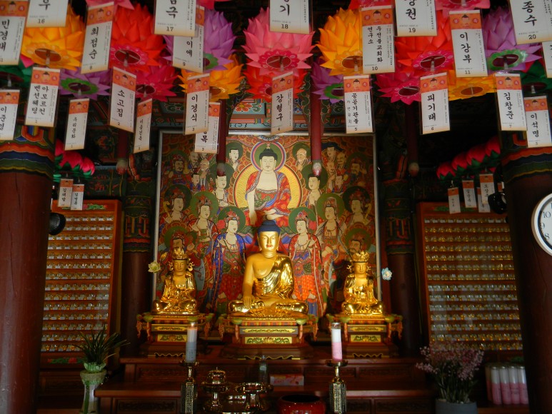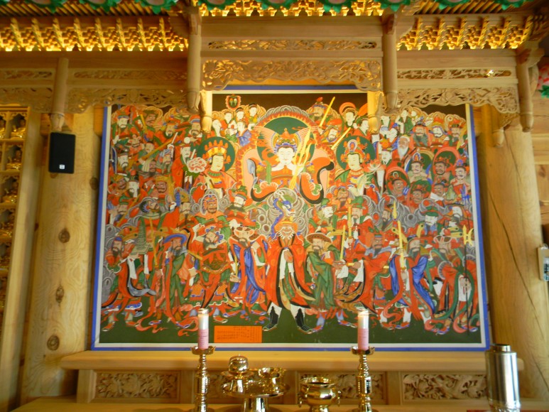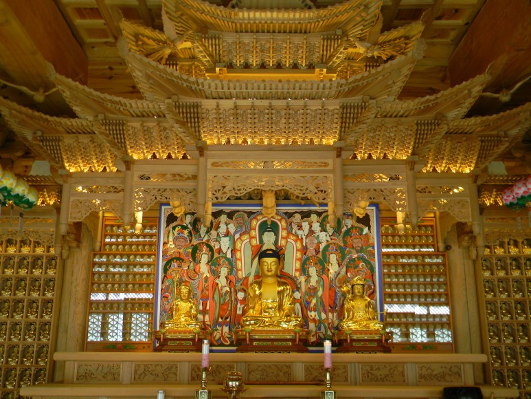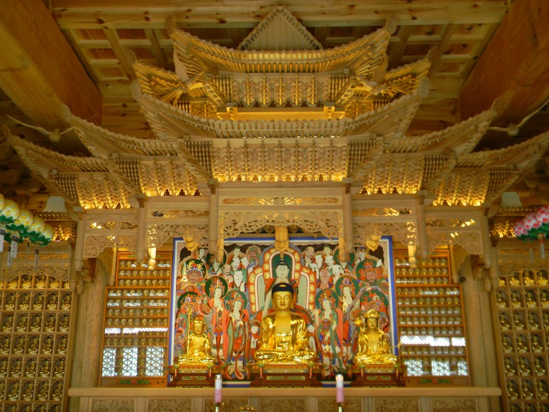 허공에는 금색 피부의 화려한 닫집이 장엄하게 자리해 가히 두 눈을 부시게 한다.