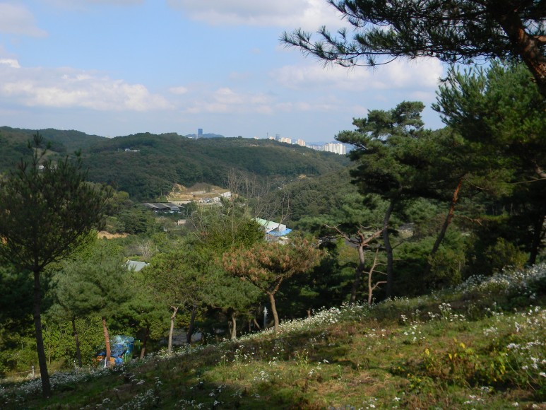 두툼히 솟은 산줄기 너머로 세종시 중심지가 작게 시야에 들어온다. 이곳은 세종시 중심지와 가까운