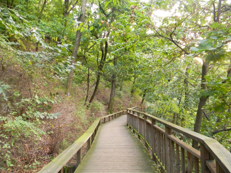 나무데크 도보길이다. 아차산~용마산~망우산의 새로운 도보길로 전 구간이 경사가 완만한 나무데크