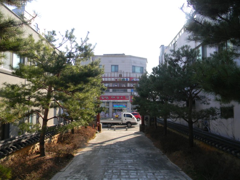 5. 홍살문에서 바라본 경모문과 그 앞에 펼쳐진 소나무들