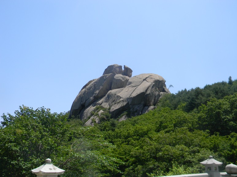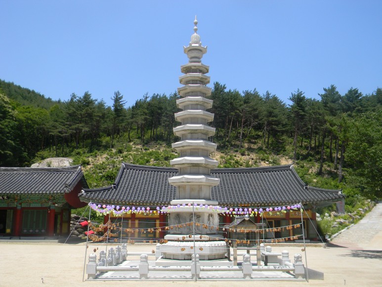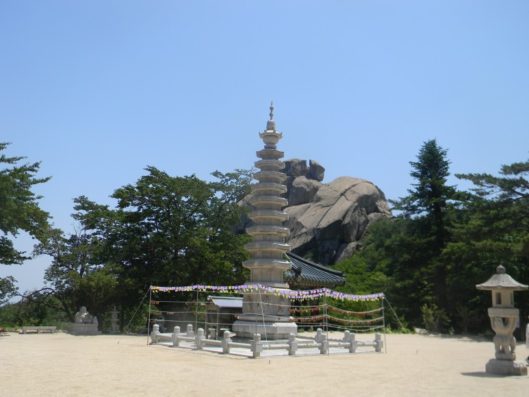 10. 대웅전에서 바라본 8각9층석탑과 그 너머로 가깝게 보이는 수바위