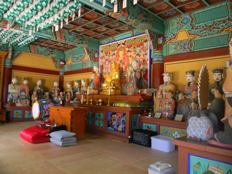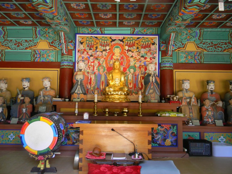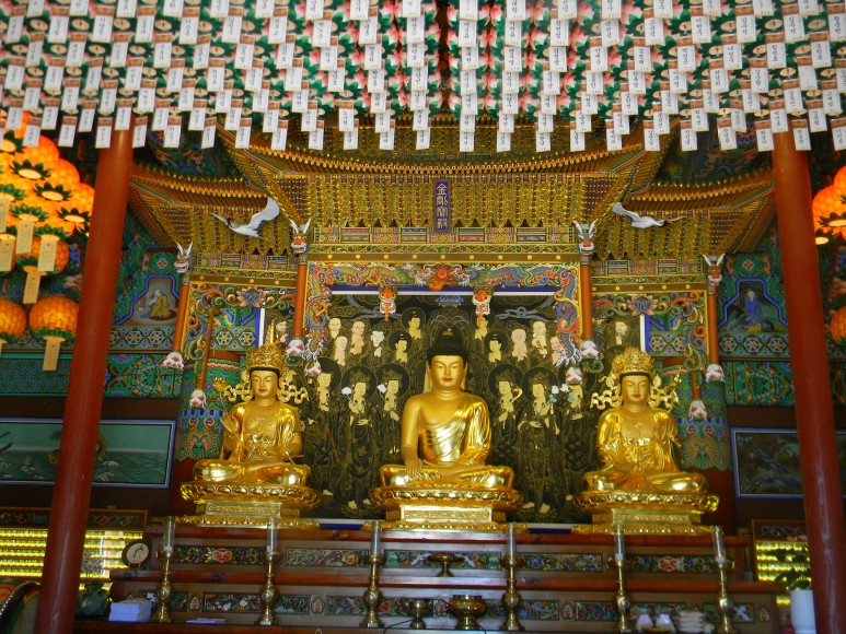 9. 대웅전에 봉안된 금동 피부의 석가3존상