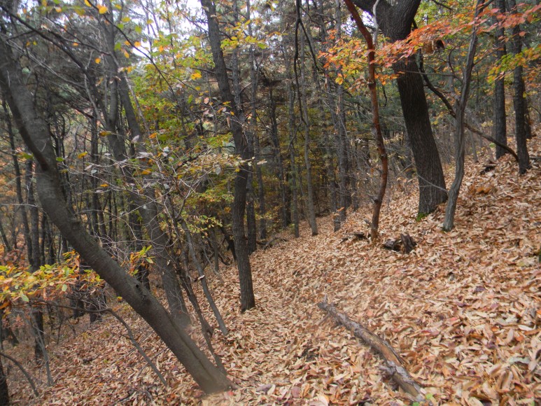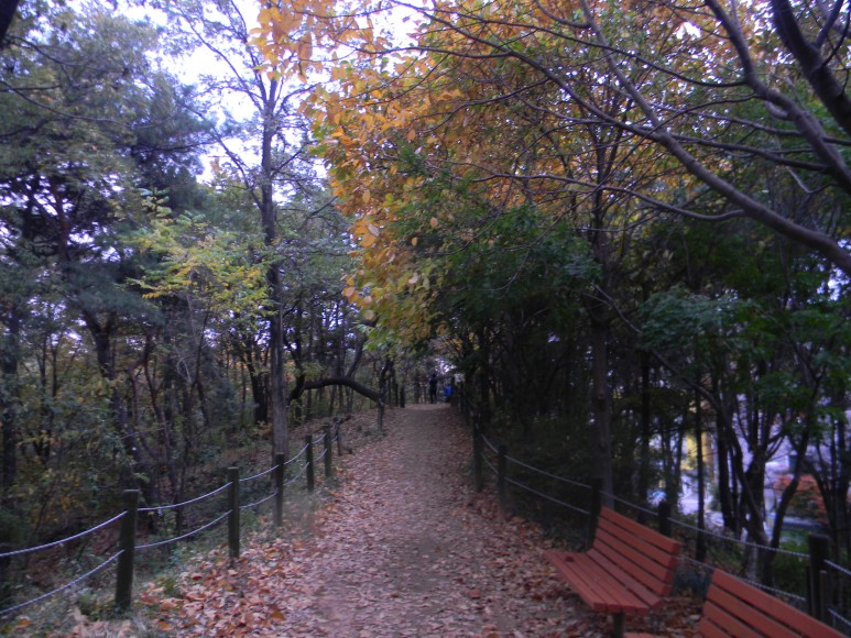뜬 낙엽들이 수북히 깔려 발걸음의 감각을 다소 부드럽게 해준다.