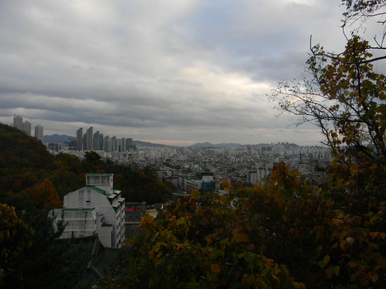 늦가을이 화사하게 불을 질러놓은 매봉산, 그 너머로 목동 지역과 관악산이 두 망막에 잡힌다.