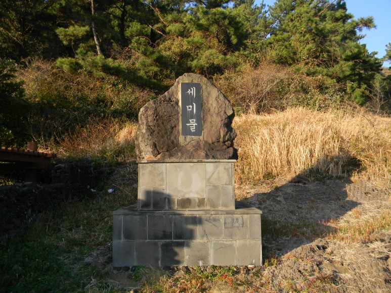 세미물은 대정향교 서쪽에 자리한 샘터로 용천수가 솟고 있다. 예전에는 주변 마을과 대정향교의 수