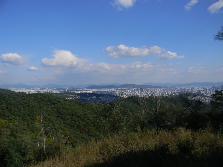 멀리 아차산~용마산~망우산 산줄기와 구리, 남양주, 강동/송파, 남한산까지 흔쾌히 두 망막에 들어온