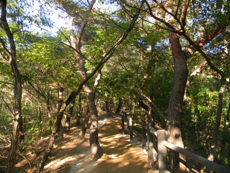 남쪽 숲길이 말바위 경유 성곽길보다 삼청공원으로 약간 빨리 가는 길이나 크게 차이는 안나며, 수목