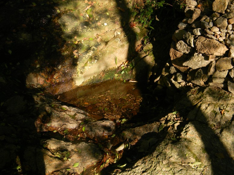 대야 정도로 고여 있는데, 때 묻지 않은 산속이라 수분의 질은 청정해 보인다. 못 주변 바위에는 사람
