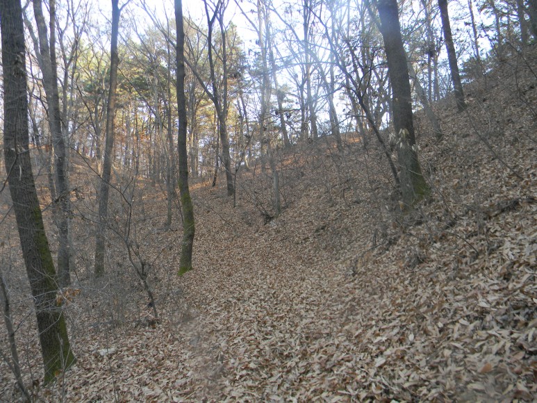 산길 주변으로 성곽터의 윤곽이 조금은 남아있어 눈썰미가 있다면 확인하는데 별로 어려움은 없다.