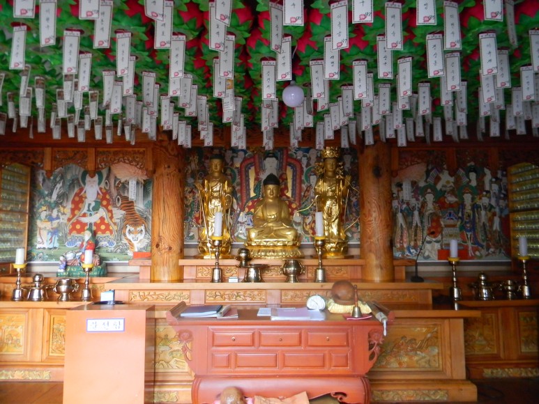 대웅전에는 금동석가3존상과 후불탱, 그리고 산신탱 등이 들어있다.