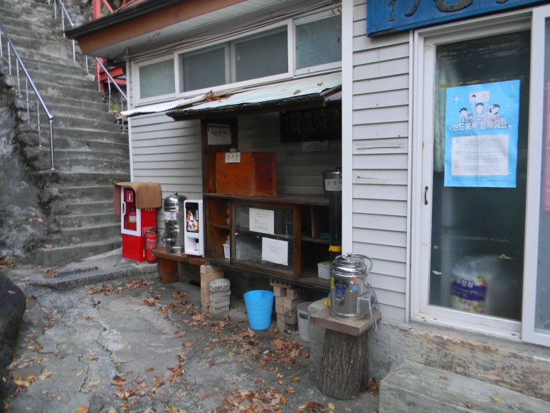 종무소 앞에는 산꾼과 나그네, 절을 찾은 중생들을 위해 따뜻한 한방차와 커피(커피자판기), 식수를