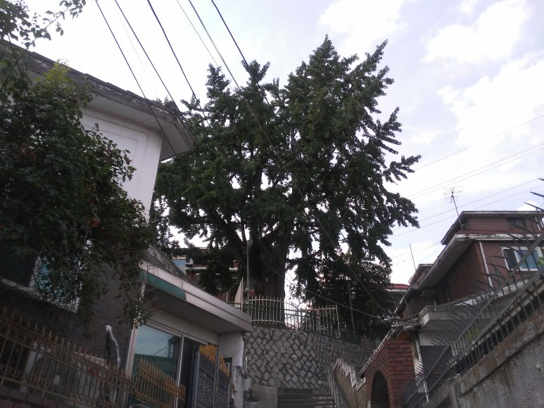 나무 주위로 주택들이 마구 뿌리를 내려 은행나무의 생육 환경이 그리 좋아보이지 않는다. 서울 장안