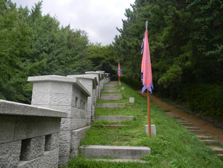 5. 깃발이 마중을 하는 동래읍성 북문 동쪽 성곽길 (북장대 방향)