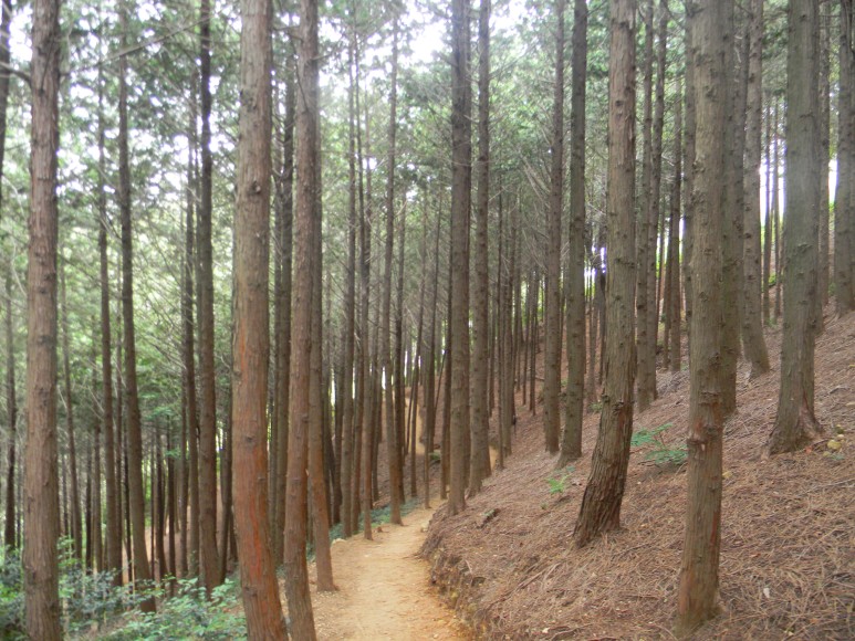 으로 숲 사이로 숲길이 상큼하고 펼쳐져 있다.