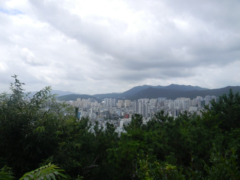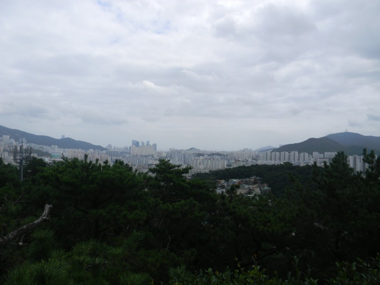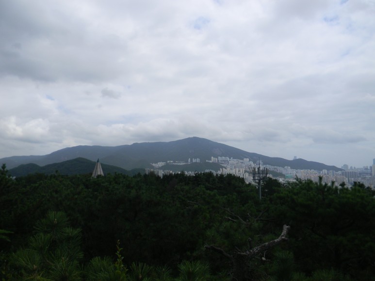 동래구 동부 지역과 해운대구 서부 지역, 그리고 해운대의 대표 지붕인 장산이 시야에 들어온다.